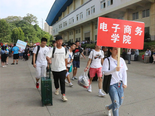 金秋时节,美丽九院又迎来2018级学子。9月3日下午开始,电子商务学院的迎新队伍用微笑和细致的服务迎接新生家长和新生的到来。