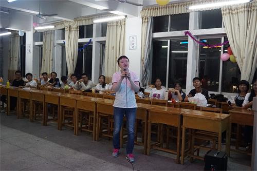 当晚,各班活动不断,呼声不断,学院领导的到来更是点燃了晚会的热潮。党委书记刘新强给每个班都送去了诚挚的中秋祝福,与同学们亲切地握手、拥抱,并演唱一首《朋友》带动大家的活动热情,刘书记强调:“大家齐聚九院,相聚化环,是一种缘分,希望大家今后快乐学习、快乐成长”;学生科科长吴敏、团委书记王颖和新生辅导员柏杨分别演唱了《咱当兵的人》、《打靶归来》等歌曲,祝福大家学习进步、身体健康、生活愉快;17级老生还精心编排了舞蹈《思美人》,让人眼前一亮。