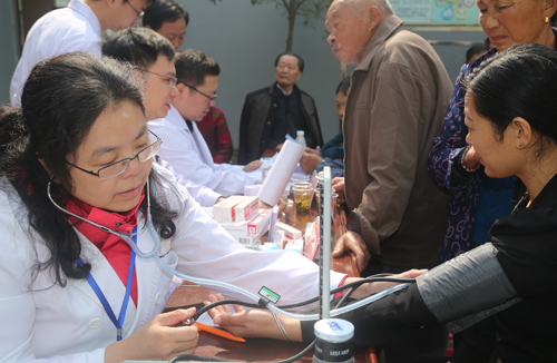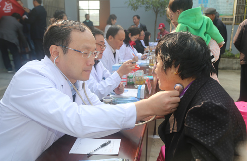 张书记、殷副院长此行安排了由附属医院多位主任医师组成的专家义诊团,并随队携带了心电图、彩超、血压计、血糖仪等诊疗设备为扶贫点村民进行义诊。此次“脱贫攻坚我先行”义诊活动虽然把地点设在我院扶贫点枫树村,但涌泉乡大范围地区的许多居民早就闻讯前往咨询就诊,义诊现场人山人海。殷副院长作为附院神经内科学科带头人、脑血管病知名专家,更是直接“披褂上阵”为村民解决凝难病症。此次义诊共接诊患者约500人,免费发放药品价值2000多元,受到了乡民一致好评。