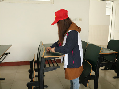 中午,入党积极分子们准时在立信楼前集合,在负责人进行了简单的任务分配后,积极分子们便立刻投入到卫生清扫活动中。有的同学清理桌面上的小广告,有的清扫地上的垃圾纸屑,还有的收拾讲桌上的教学用具。清扫活动持续了一个多小时,大家分工明确,配合默契,不放过任何边边角角,将教室打扫得一尘不染。同学们用自己的实际行动为校园增添一份清新,增加一抹明亮。