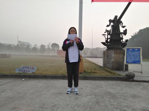 升国旗仪式开始,国旗班同学们英姿飒爽,迈着铿锵有力的步伐走向庄严的升旗台。伴随着庄严的《义勇军进行曲》,五星红旗冉冉升起,迎风飘扬,在场的每一个人都深怀着对祖国的热爱与崇高的敬意向国旗行注目礼。随后,由A1841班的周娅鑫同学发表以《向着期末,奔跑吧》为主题的国旗下讲话。她建议同学们要有目标的学习,要做一个有准备的人,向着期末,一起努力!朝阳缓缓升起,新的一天已然开始,升旗仪式正式结束,同学们有序退场,投入新一天的学习生活中。