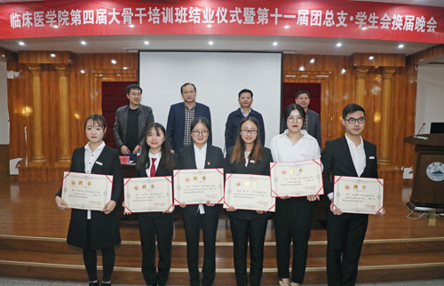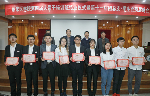 贾宗林副院长宣读了第四期“杏林青年”大学生骨干培训班优秀学员名单,以及第十届团总支·学生会优秀学生干部名单。与会领导一同为陈涛等9名优秀学员颁发了荣誉证书,为第十届团总支·学生会张梦迪等6名优秀学干颁发了荣誉证书。