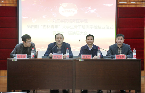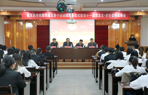11月26日,临床医学院/附属医院第四期“杏林青年”大学生骨干培训学校结业暨第十一届团总支·学生会换届仪式在该院行政楼九楼多功能厅举行。该院党委书记张南华,党委副书记、副院长殷小平,副院长贾宗林出席了会议,仪式由学生科科长燕碧波主持。