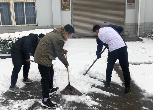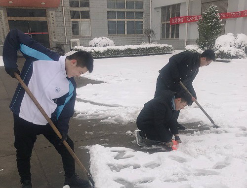 机材学院组织开展机械实验楼前路面积雪清扫活动