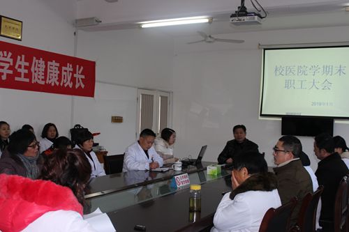 1月11日上午,校医院在四楼会议室召开全年工作总结会,会议由钟志刚副院长主持,校医院全体员工参加了会议。