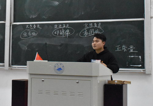 开班仪式上,旅游与国土资源学院学生会主席彭桂阳给学员们介绍了青马工程骨干班的概况和基本纪律规范并带学员们回顾了第一期青马班的学员们取得的成果。本次开班仪式也邀请了第一期青马班的优秀学生干部代表谭宏伟同学和吴鹏程同学与大家交流。同学们轮番进行了自我介绍后,在学生会主席彭桂阳的组织下,学员们投票选举出了旅游学院第二期青马工程骨干班的六位班委。