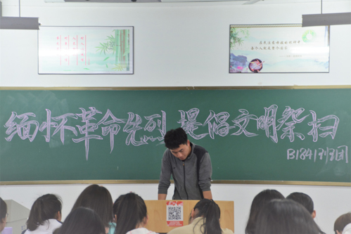A1811班以讲述革命先烈故事作为活动的主要形式,在同学们口中,一位位赤胆忠心、一心向国的先烈形象被展现于在场每一个人的眼前,感人肺腑。B1841班同学结合自己清明扫墓的经历,积极发表对文明祭扫的见解,呼吁其他人一同行动;A1831派出代表发言,代表讲述了自己在清明节为革命先烈扫墓时,在场人员默立静思、献上花圈,并向革命烈士敬献鲜花、寄托无限哀思的情景,引发在场同学对革命先烈的缅怀。