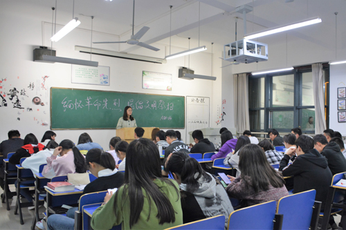 4月7日晚,政法学院于八里湖校区综合楼4楼教室开展“缅怀革命先烈,提倡文明祭扫”主题团日活动,活动由各班团支书主持,同学们积极参与。