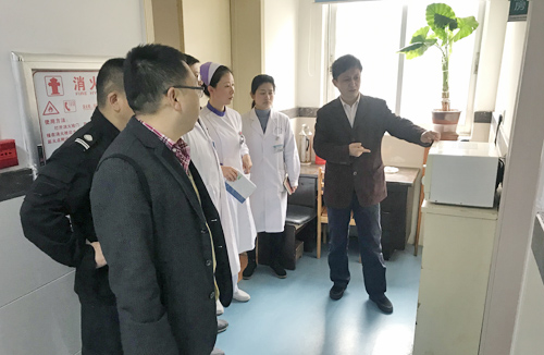 检查组分为三组分别对该院东院区、西院区和口腔院区进行了全面的检查。从各院区的门诊到住院部,从地下室、配电房、处置室、治疗室、病区到值班房等处,院领导们仔细了解配电设备、大功率电器的运转和使用情况,查看消防栓和灭火器能否正常使用、消防通道是否通畅,询问一线工作人员工作中遇到的安全问题并提出解决方法。