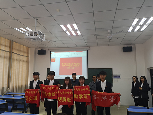 为进一步提高学生干部的思想政治素质及创新实践能力,4月12日中午,艺术学院于艺术大楼西102举行了第三期“艺彩纷呈”大学生骨干培训开班仪式。艺术学院党委副书记沈杨、团委书记刘元明、骨干班班主任以及本次所有骨干成员参加了此次仪式。