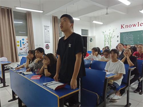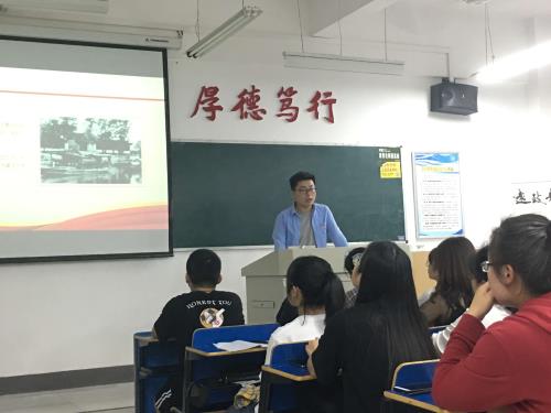 4月25日晚,外国语学院团学联副书记赵鹏在香远楼501教室为大一年级团干部及新入团的学生上团课,进行团的知识培训。