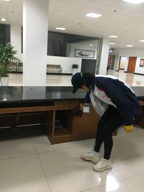 同学们来到逸夫图书馆,在老师的带领下,志愿者们很快熟悉了工作流程。志愿者们主要进行的是擦书架和摆齐桌椅这两方面的工作,旨在为大家营造一个安静舒适的阅读环境,共同打造和谐“书香”校园。这是一个与城市的繁华喧嚣迥然不同的书香世界,你会看见认真学习的同学,也会志愿者们忙碌的身影,志愿者们的身形并不高大,但是他们认真忙碌的身影却让人感觉格外温暖。志愿者们有的在擦书架,有的在整理图书馆的服务台,认真又小心翼翼,生怕惊扰了旁边认真学习的同学们,并且在忙碌中也不忘互帮互助。快要到闭馆时间时,为了给来图书馆学习的同学们一个更加舒适的学习环境,志愿者们又将桌椅摆齐。临近尾声,志愿者的工作已经全部完成,大家有序的离开了逸夫图书馆。