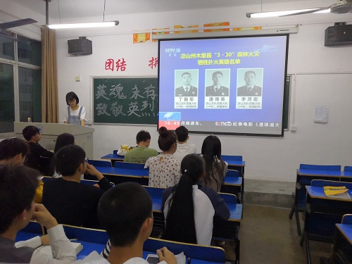 活动伊始,团支书为同学们讲述了四川省凉州木里县境内发生的森林火灾的经过,详细解说了“林火燃爆”讲述了烈士的战友和家人接受采访时的所说内容,并观看了关于此次森林火灾的相关视频。在观看视频之后,同学们感受颇深、踊跃发言,畅谈感悟,表示作为新时代的学生会秉承英烈的光荣传统,发扬不怕苦不怕牺牲的精神,为祖国的强大而努力奋斗。